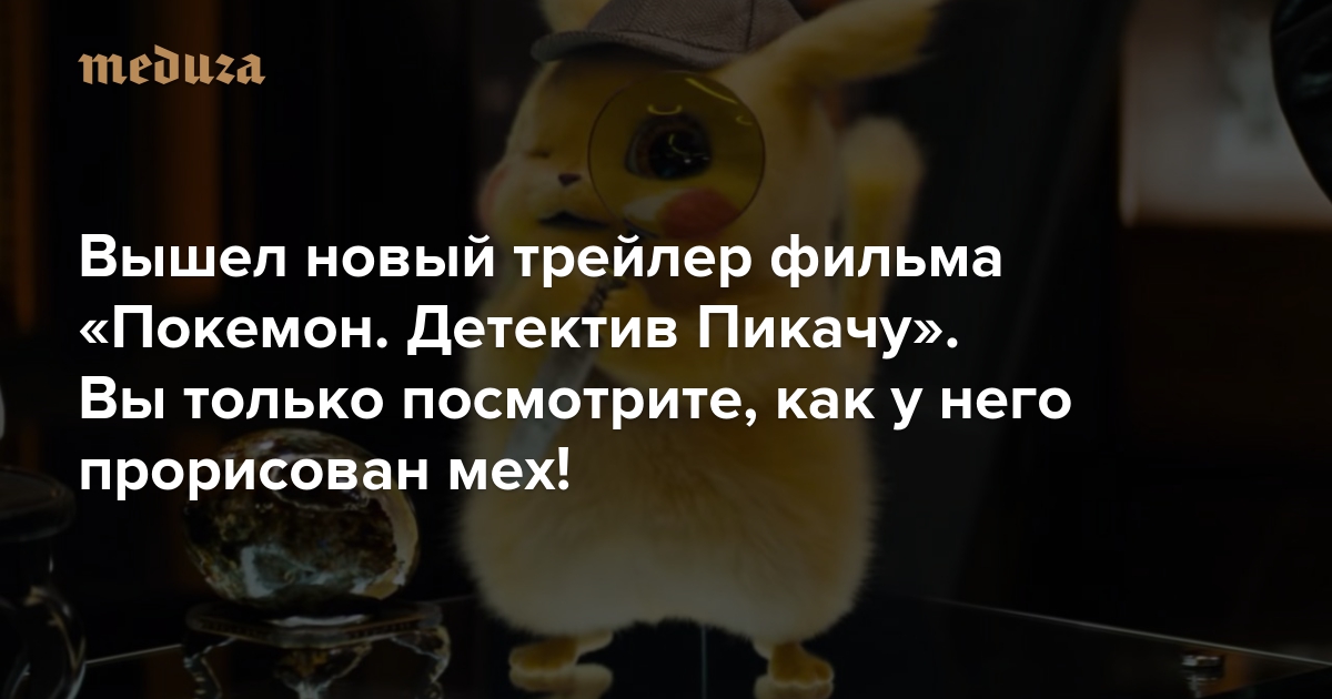 Вышел новый трейлер фильма «Покемон. Детектив Пикачу». Вы только посмотрите, как у него прорисован мех!