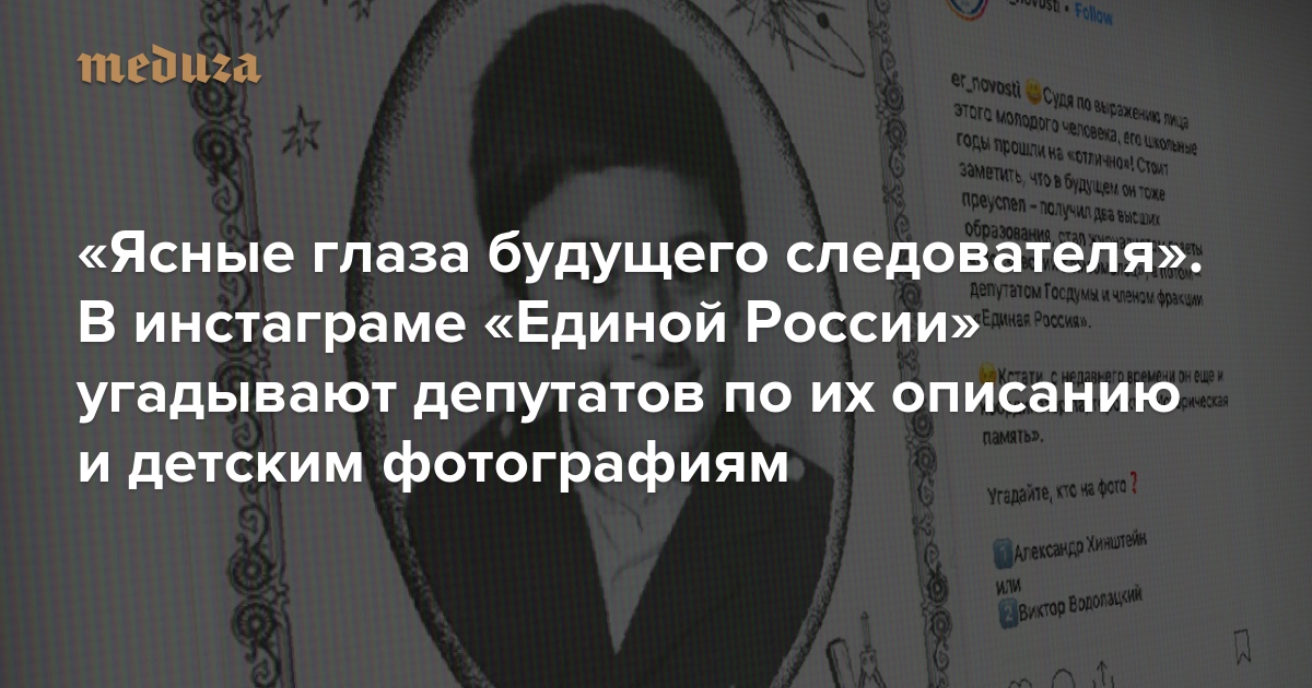 «Ясные глаза будущего следователя». В инстаграме «Единой России» угадывают депутатов по их описанию и детским фотографиям