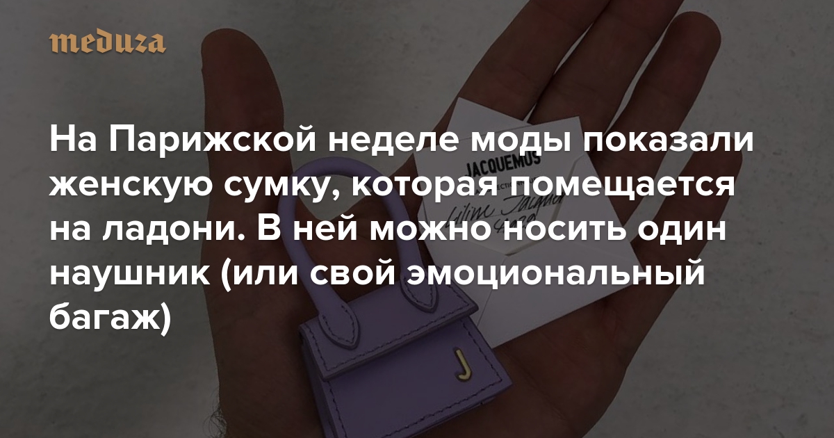 На Парижской неделе моды показали женскую сумку, которая помещается на ладони. В ней можно носить один наушник (или свой эмоциональный багаж)
