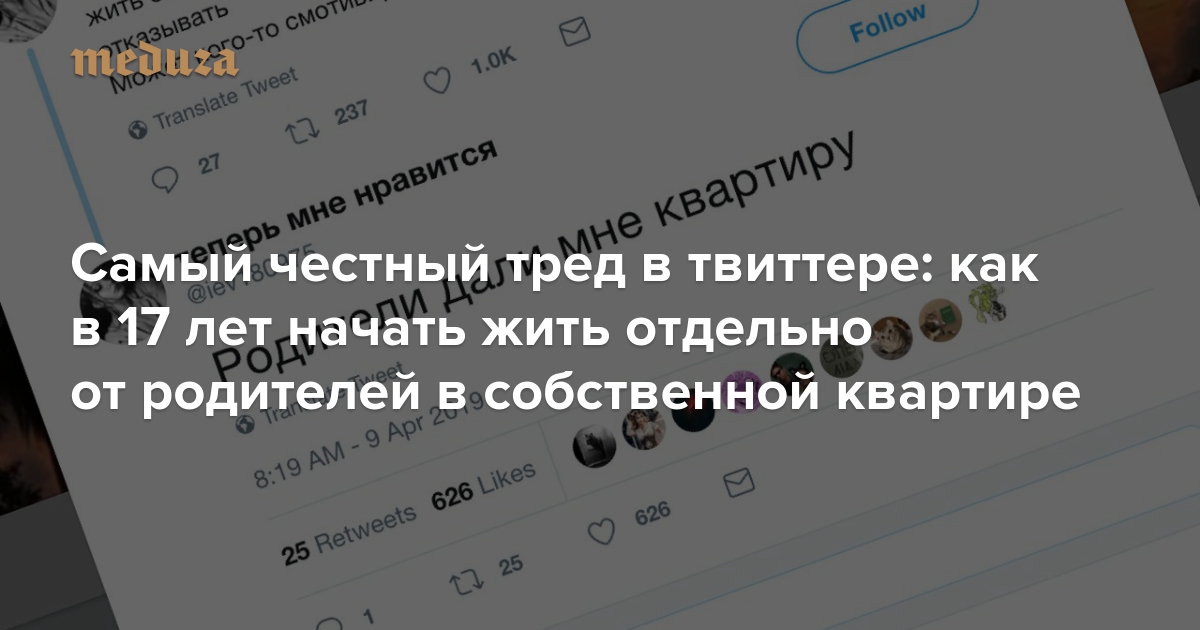 Самый честный тред в твиттере: как в 17 лет начать жить отдельно от родителей в собственной квартире