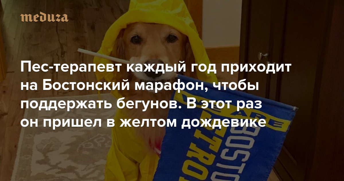 Пес-терапевт каждый год приходит на Бостонский марафон, чтобы поддержать бегунов. В этот раз он пришел в желтом дождевике