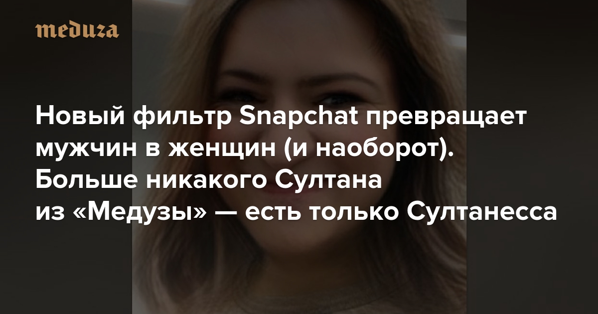 Новый фильтр Snapchat превращает мужчин в женщин (и наоборот). Больше никакого Султана из «Медузы» — есть только Султанесса