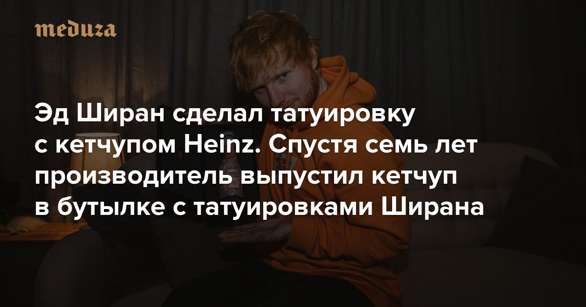 Эд Ширан сделал татуировку с кетчупом Heinz. Спустя семь лет производитель выпустил кетчуп в бутылке с татуировками Ширана