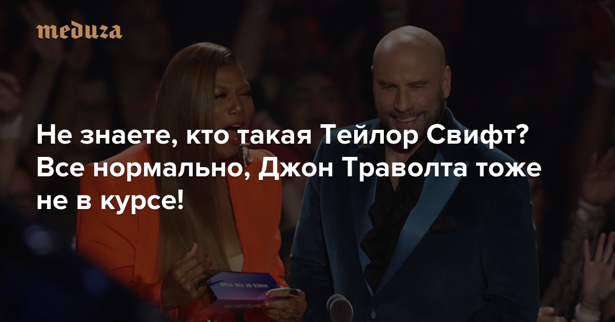 Кажется, Джон Траволта не знает, как выглядит Тейлор Свифт. Это выяснилось на церемонии MTV Video Music Awards, когда Траволта вручал Свифт награду в самой престижной категории «Видео года» за клип на композицию «You Need to Calm Down».
