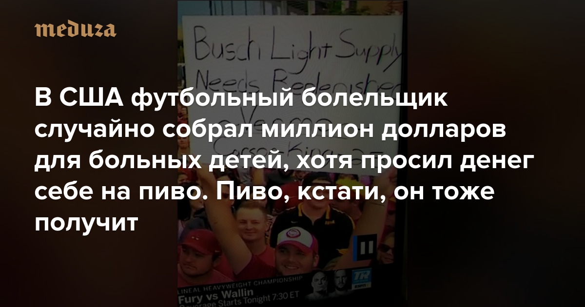 В США футбольный болельщик случайно собрал миллион долларов для больных детей, хотя просил денег себе на пиво. Пиво, кстати, он тоже получит