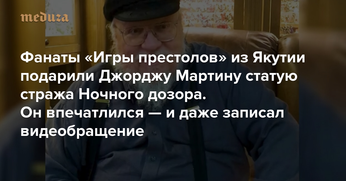 Фанаты «Игры престолов» из Якутии подарили Джорджу Мартину статую стража Ночного дозора. Он впечатлился — и даже записал видеобращение