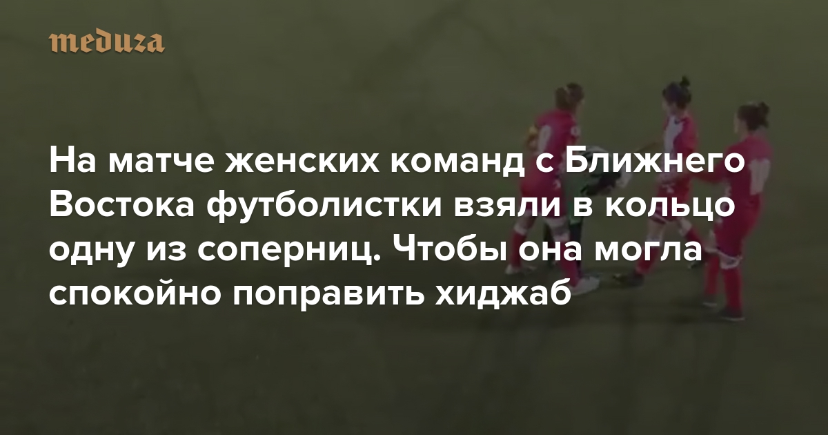На матче женских команд с Ближнего Востока футболистки взяли в кольцо одну из соперниц. Чтобы она могла спокойно поправить хиджаб