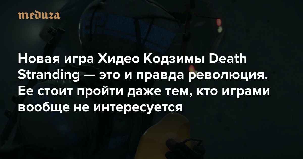 8 ноября на PS4 выходит фантастический триллер японского геймдизайнера Хидео Кодзимы Death Stranding — это одна из самых ожидаемых игр года. Главный герой восстанавливает разрушенную неизвестным катаклизмом Америку, убегает от монстров из потустороннего мира и прячется от аномалий в духе «Сталкера» Тарковского, от которого автор, понятное дело, фанатеет. Редактор раздела «Шапито» на «Медузе» Максим Иванов уже поиграл в Death Stranding и теперь рассказывает, почему Кодзима выпустил одну из главных игр последних лет.