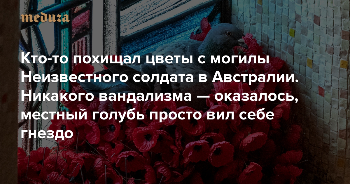 Кто-то похищал цветы с могилы Неизвестного солдата в Австралии. Никакого вандализма — оказалось, местный голубь просто вил себе гнездо