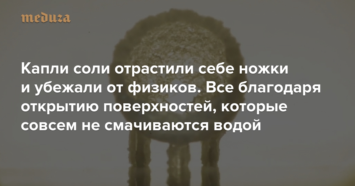 Капли соли отрастили себе ножки и убежали от физиков. Все благодаря открытию поверхностей, которые совсем не смачиваются водой
