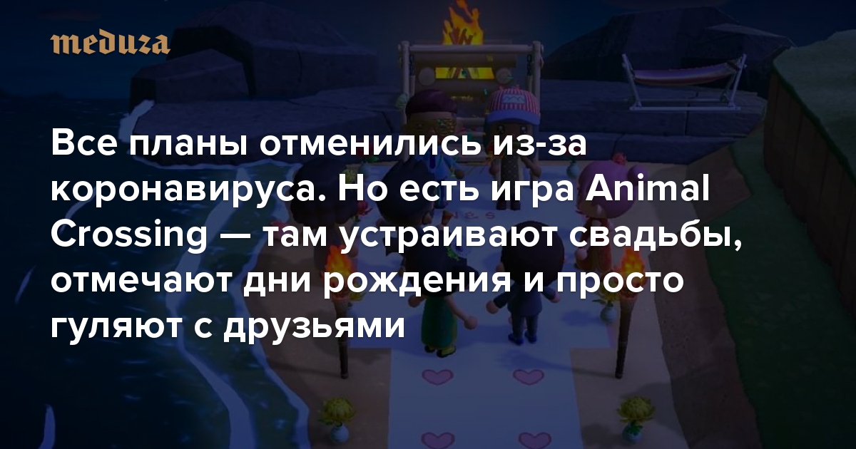 Все планы отменились из-за коронавируса. 😔Но есть игра Animal Crossing — там устраивают свадьбы, отмечают дни рождения и просто гуляют с друзьями