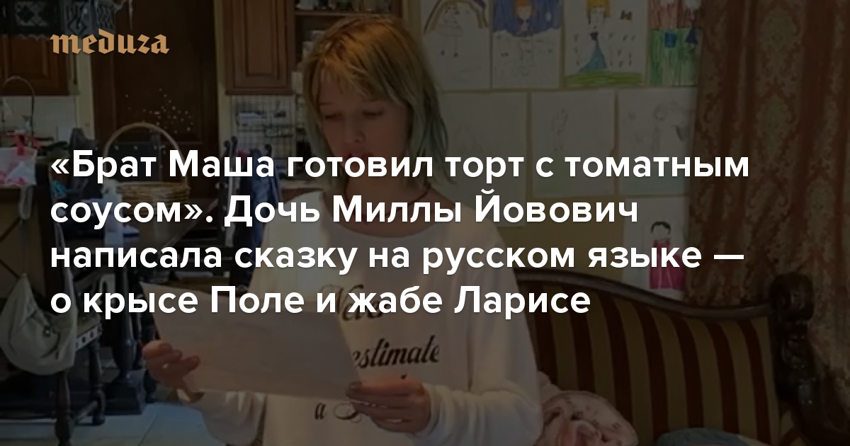 «Брат Маша готовил торт с томатным соусом» Дочь Миллы Йовович написала сказку на русском языке — о крысе Поле и жабе Ларисе
