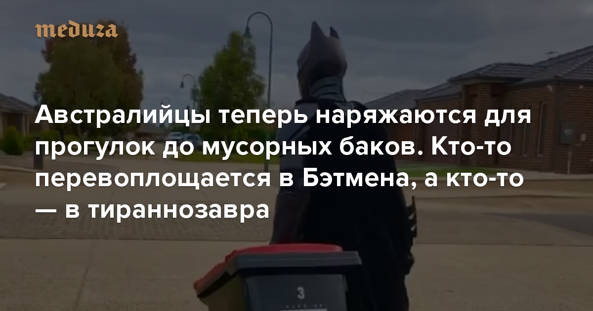 Австралийцы теперь наряжаются для прогулок до мусорных баков. Кто-то перевоплощается в Бэтмена, а кто-то — в тираннозавра