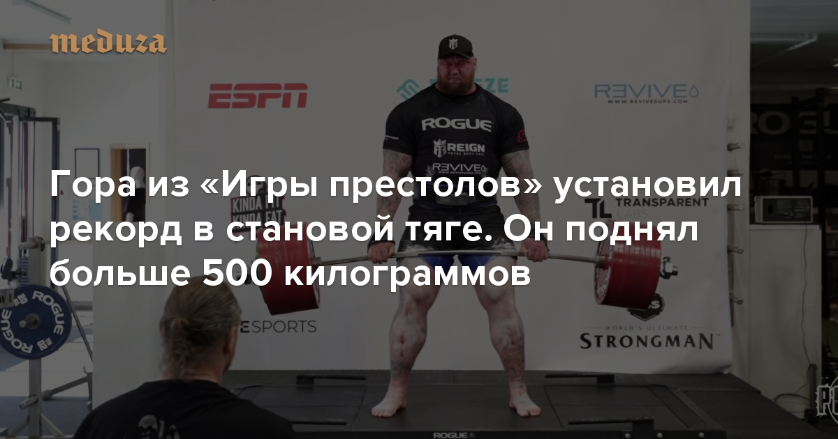 Один из самых сильных людей на Земле — исландский актер Хафтор Бьернсон, сыгравший в «Игре престолов» Григора Клигана (Гору), — установил рекорд в экипировочной становой тяге. Он поднял штангу весом в 501 килограмм.