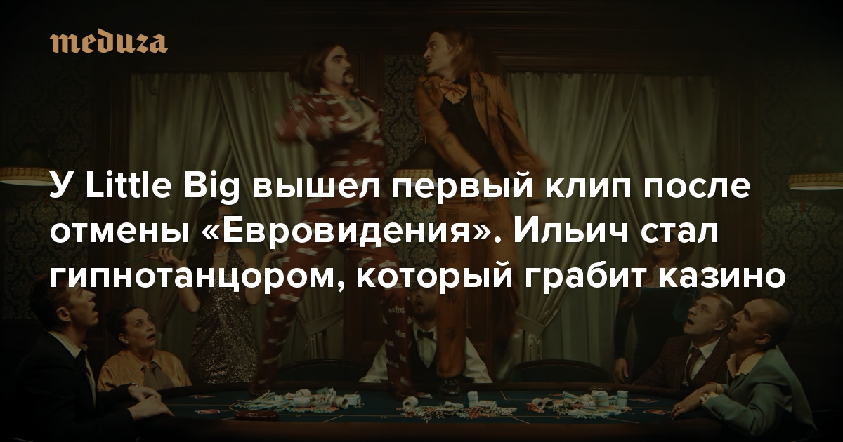 Группа Little Big выпустила клип «Hypnodancer» — первый после отмены «Евровидения» из-за пандемии коронавируса. В нем группа бандитов грабит казино, фронтмен группы Ильич танцует на столе, а посетители казино курят карандаши.