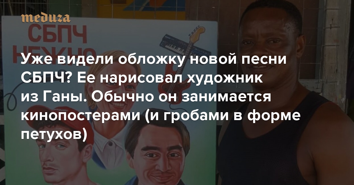 Уже видели обложку новой песни СБПЧ? Ее нарисовал художник из Ганы. Обычно он занимается кинопостерами (и гробами в форме петухов)