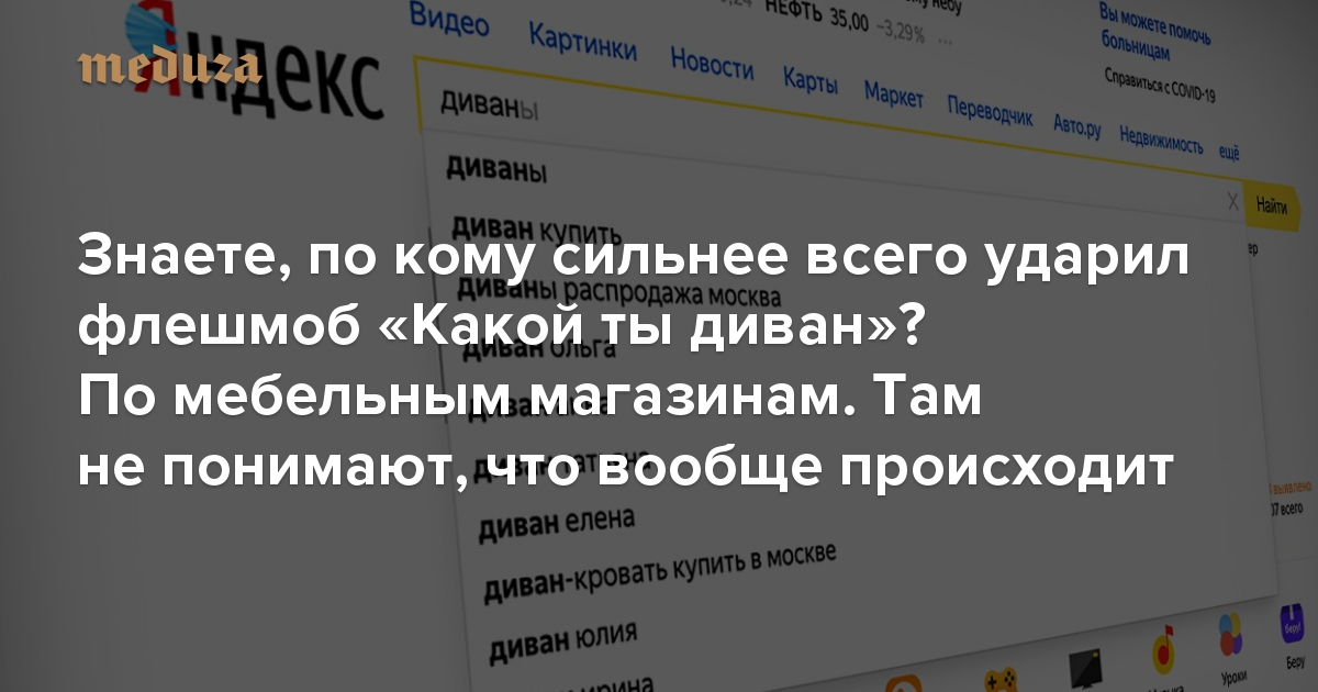 Знаете, по кому сильнее всего ударил флешмоб «Какой ты диван»? По мебельным магазинам. Там не понимают, что вообще происходит