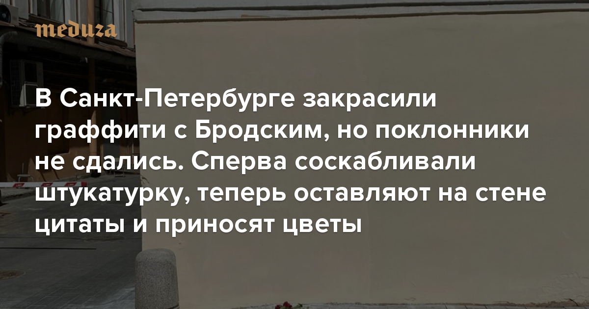 В Санкт-Петербурге закрасили граффити с Бродским, но поклонники не сдались. Сперва соскабливали штукатурку, теперь оставляют на стене цитаты и приносят цветы