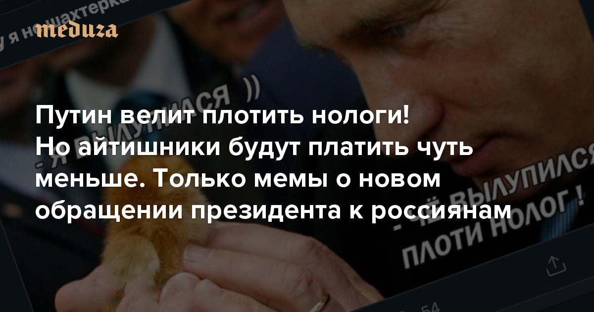 Путин велит плотить нологи! Но айтишники будут платить чуть меньше Только мемы о новом обращении президента к россиянам