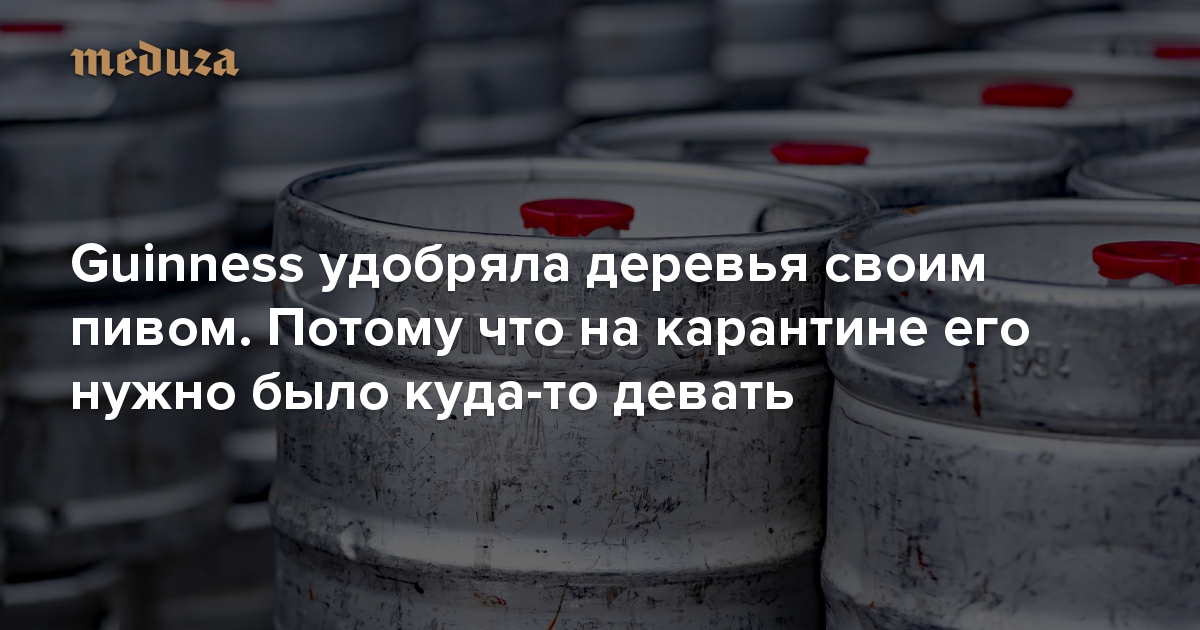 Пивоварня Guinness пустила сотни тысяч кег с пивом на удобрение для ив и елей. Дело, разумеется, в коронавирусе: бары и пабы закрылись на время карантина, а сваренное пиво нужно было куда-то девать, иначе бы оно просто испортилось. Поэтому стауты и эли Guinness решили отдать природе. Пиво также пошло на компостирование, а часть превратили в биогаз.