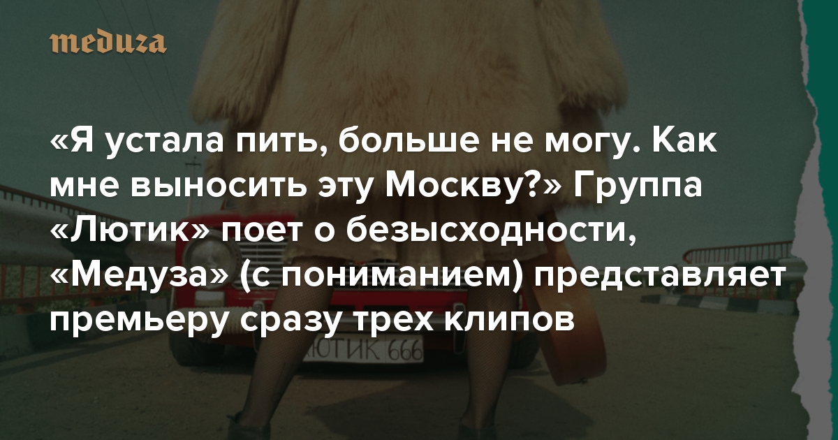 Я устала пить, больше не могу. Как мне выносить эту Москву? Группа «Лютик» поет о безысходности, «Медуза» (с пониманием) представляет премьеру сразу трех клипов