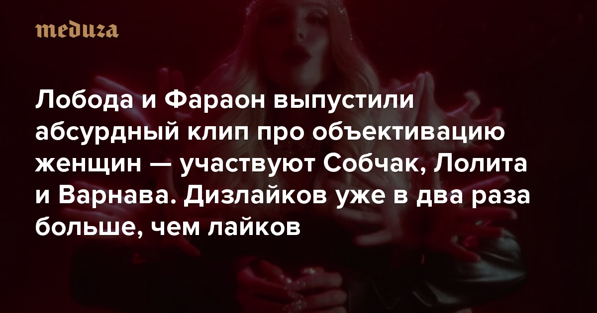 Лобода и Фараон выпустили абсурдный клип про объективацию женщин — участвуют Собчак, Лолита и Варнава. Дизлайков уже в два раза больше, чем лайков