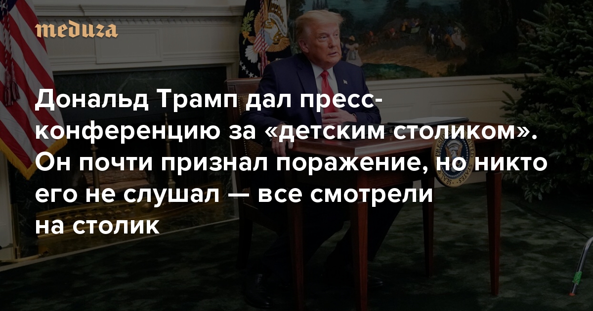 Дональд Трамп дал пресс-конференцию за «детским столиком». Он почти признал поражение, но никто его не слушал — все смотрели на столик