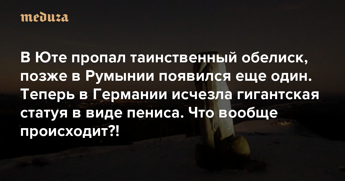 В Юте пропал таинственный обелиск, позже в Румынии появился еще один. Теперь в Германии исчезла гигантская статуя в виде пениса. Что вообще происходит?!