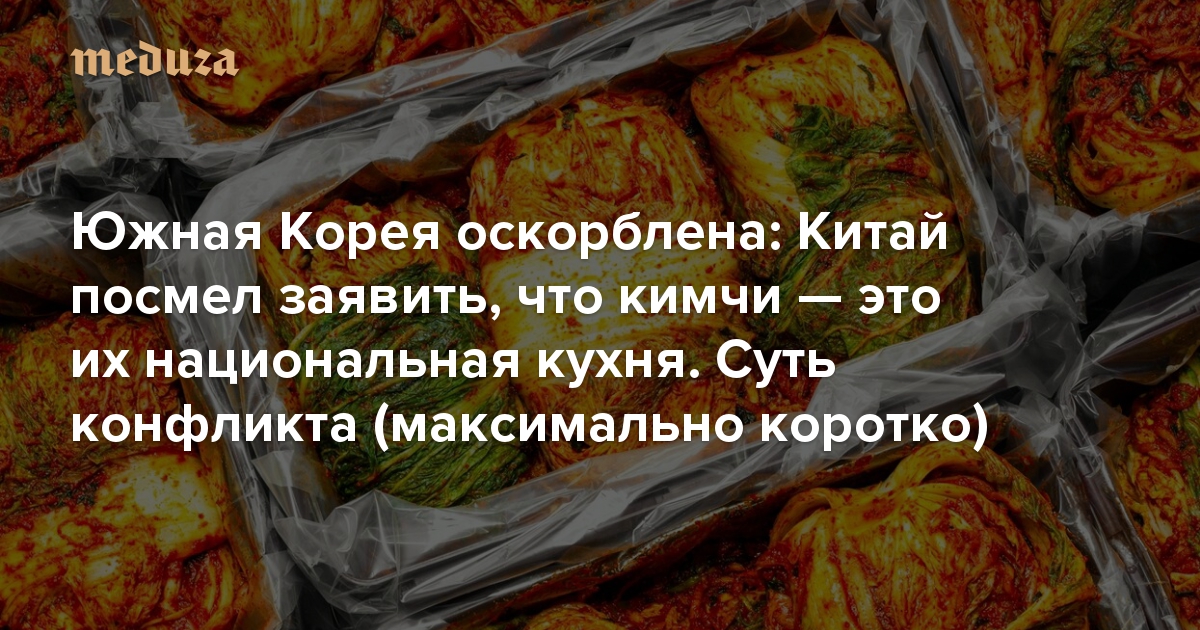 Началось все с публикаций в китайских СМИ, где утверждалось, что Китай стал мировым лидером по производству кимчи. Недавно страна получила сертификат Международной организации по стандартизации (ISO). Но не за кимчи, а за пао цай — это маринованные овощи, которые часто используют в блюдах сычуаньской кухни.