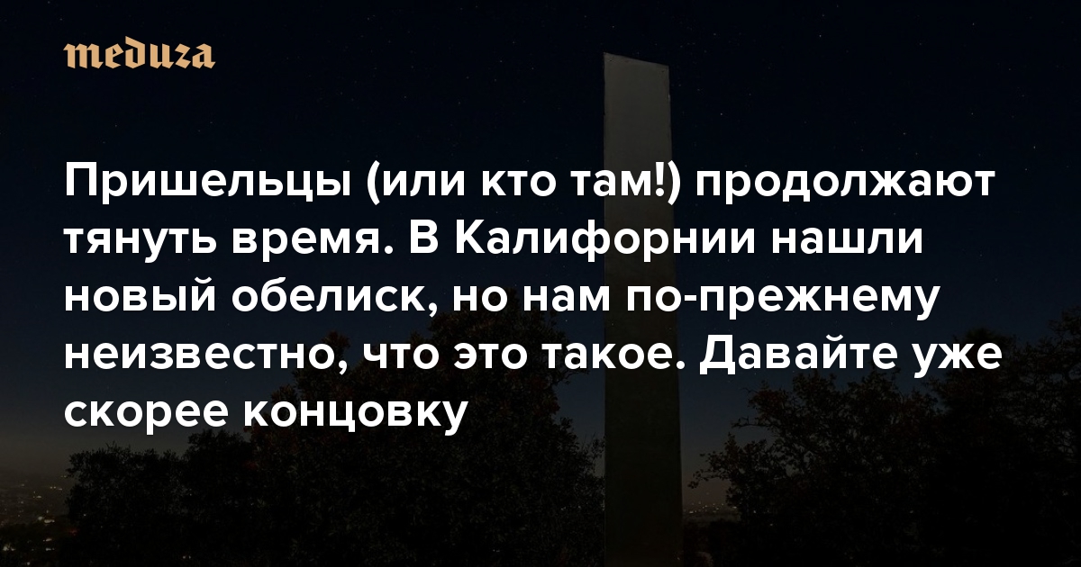 Пришельцы (или кто там!) продолжают тянуть время 😔 В Калифорнии нашли новый обелиск, но нам по-прежнему неизвестно, что это вообще такое. Давайте уже скорее концовку