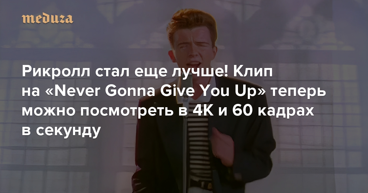 Рикролл стал еще лучше! Клип на песню «Never Gonna Give You Up» теперь можно посмотреть в 4K и 60 кадрах в секунду