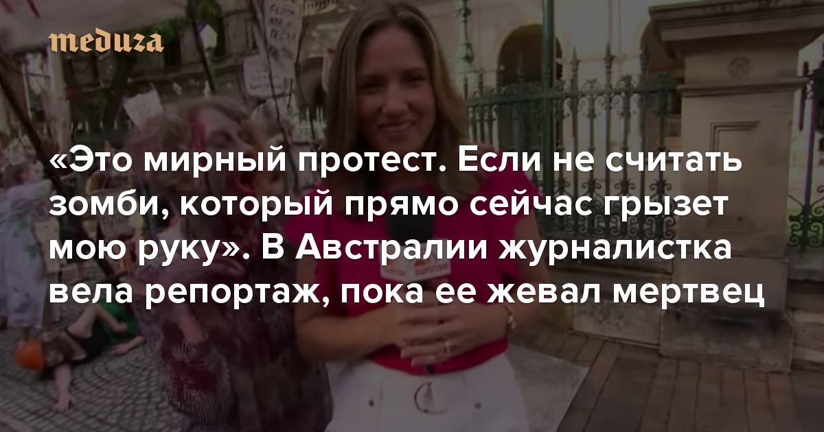 «Это мирный протест. Если не считать зомби, который прямо сейчас грызет мою руку» В Австралии журналистка вела репортаж, пока ее жевал ходячий мертвец