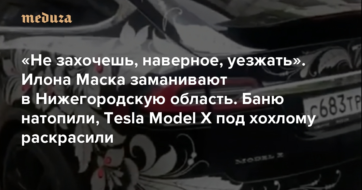 «Не захочешь, наверное, уезжать» Илона Маска заманивают в Нижегородскую область. Баню натопили, Tesla Model X под хохлому раскрасили