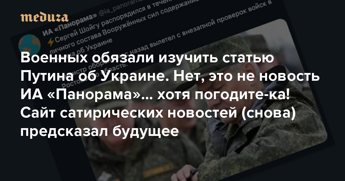Военных обязали изучить статью Путина об Украине. Нет, это не новость ИА «Панорама»… хотя погодите-ка! Сайт сатирических новостей (снова) предсказал будущее