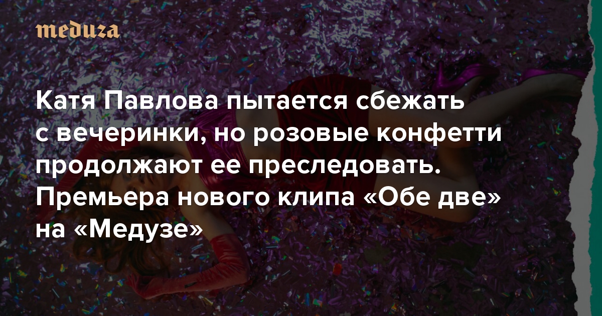 Группа «Обе две» представила сингл «Конфетти» (из нового альбома, который выйдет осенью) — и клип на песню. В видео солистка группы Катя Павлова настойчиво пытается сбежать с вечеринки — но розовые конфетти продолжают ее преследовать. Режиссер видео — Антон Морозов. «Медуза» представляет премьеру клипа с комментариями авторов.