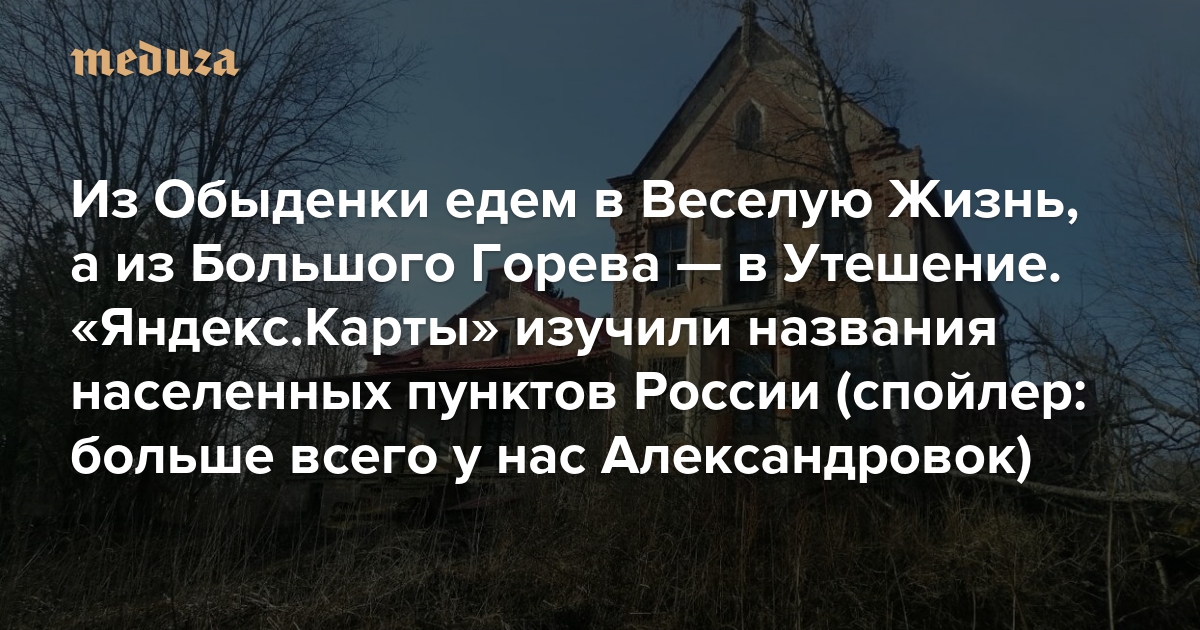 Из Обыденки едем в Веселую Жизнь, а из Большого Горева — в Утешение «Яндекс.Карты» изучили названия населенных пунктов России (спойлер: больше всего у нас Александровок)
