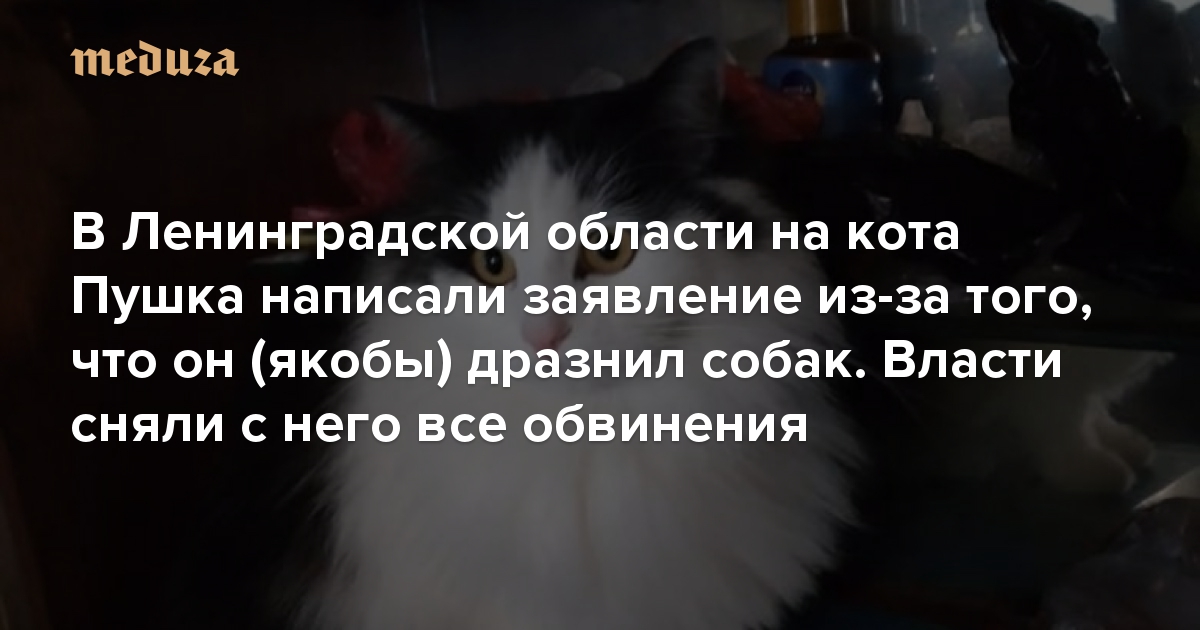 В Ленинградской области на кота Пушка написали заявление из-за того, что он (якобы) дразнил собак. Власти сняли с него все обвинения