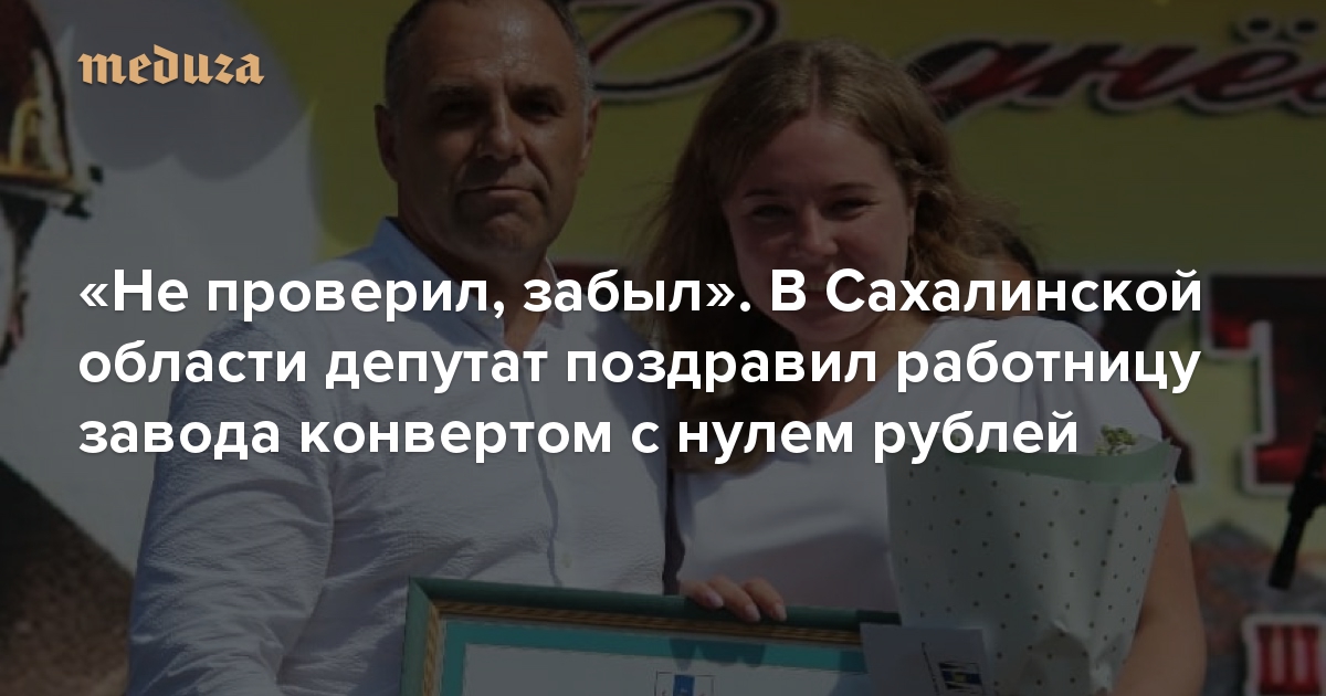 «Не проверил, забыл» В Сахалинской области депутат поздравил работницу завода конвертом с нулем рублей