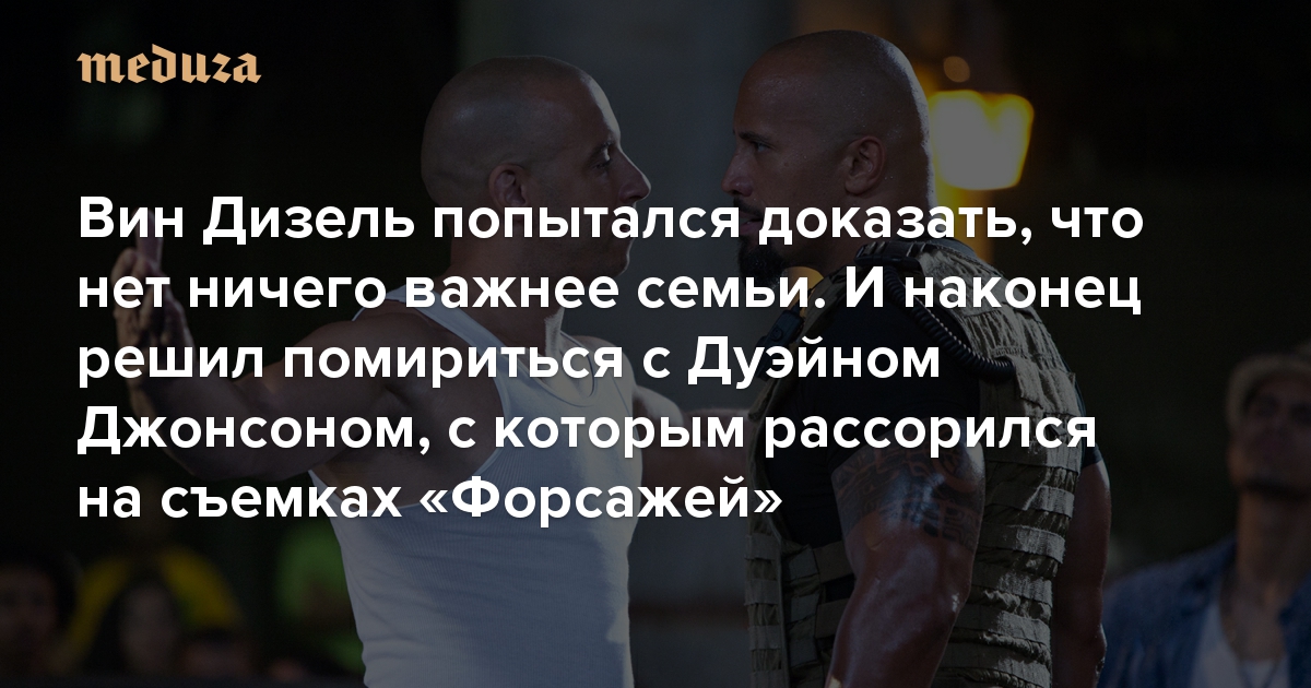 Вин Дизель попытался доказать, что нет ничего важнее семьи. И наконец решил помириться с Дуэйном Джонсоном, с которым рассорился на съемках «Форсажей»