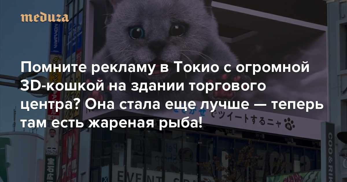 Помните рекламу в Токио с огромной 3D-кошкой на здании торгового центра? Она стала еще лучше — теперь там есть жареная рыба!