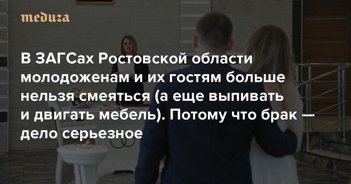 В ЗАГСах Ростовской области молодоженам и их гостям больше нельзя смеяться (а еще выпивать и двигать мебель) Потому что брак — дело серьезное