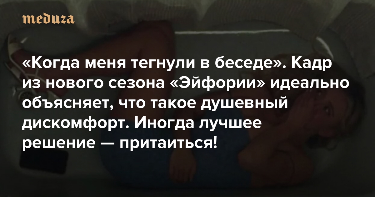 «Когда меня тегнули в беседе» Кадр из нового сезона «Эйфории» идеально объясняет, что такое душевный дискомфорт. Иногда лучшее решение — притаиться!