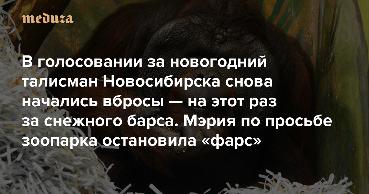 В голосовании за новогодний талисман Новосибирска снова начались вбросы — на этот раз за снежного барса Мэрия по просьбе зоопарка остановила «фарс» (лишь бы не отдавать победу орангутану Бату)