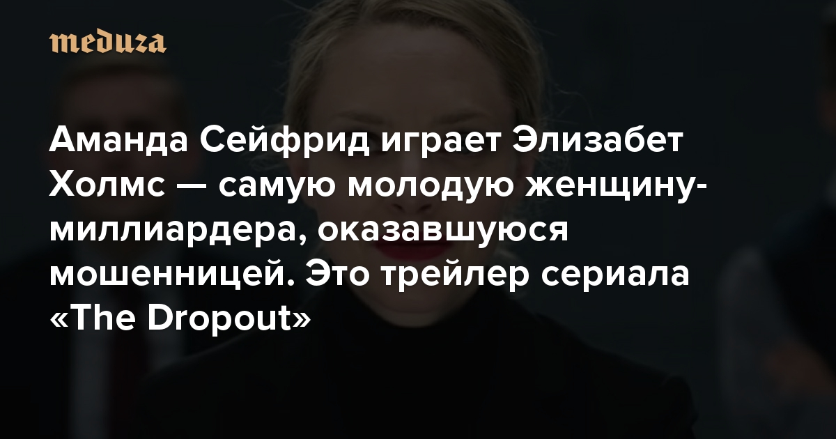 Аманда Сейфрид играет Элизабет Холмс — самую молодую женщину-миллиардера, оказавшуюся мошенницей Это трейлер сериала «The Dropout»