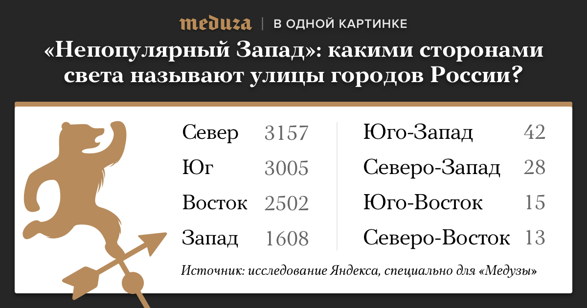 В исследовании «Яндекса» учитывались все населенные пункты в России. В него не вошли улицы, в которых часть света входит в составное название (например, Новосеверная улица)