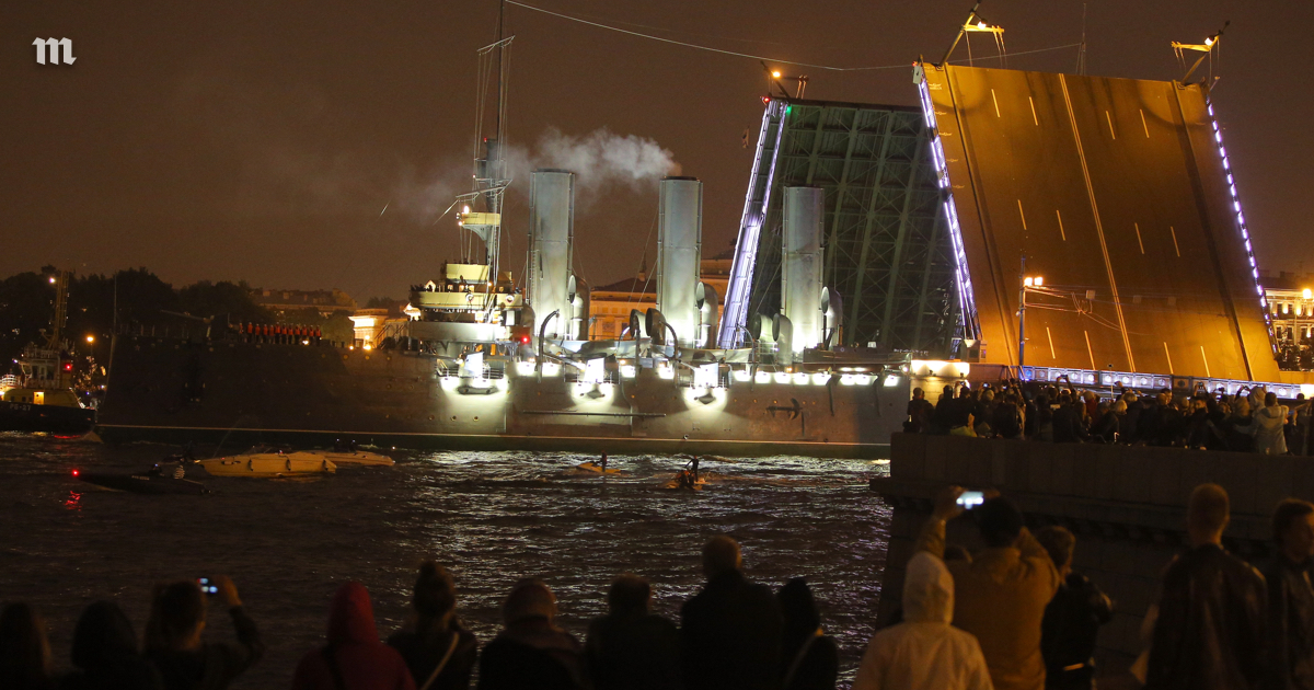 Крейсер «Аврора» 16 июля прибыл к месту постоянной стоянки на Петроградской набережной в Санкт-Петербурге. Корабль с сентября 2014 года проходил ремонт на Кронштадтском морском заводе. К набережной его доставили четырьмя буксирами. На пути «Авроры» были разведены три моста через Неву — Благовещенский, Дворцовый и Троицкий.