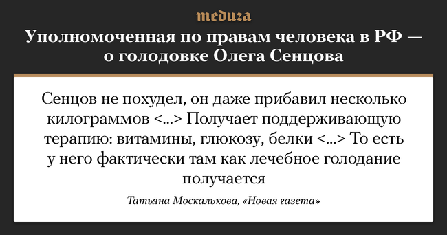 Омбудсмен Москалькова сравнила голодовку Сенцова с лечебным голоданием. Цитата