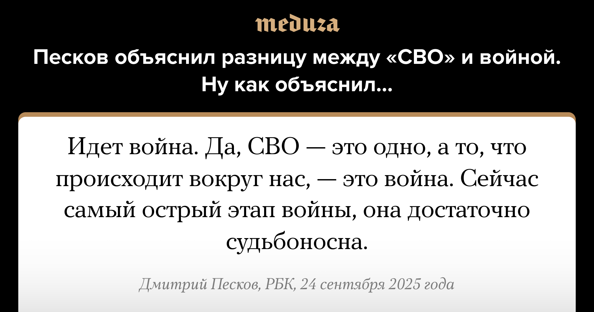 Песков объяснил разницу между «СВО» и войной. Ну как объяснил… Вот цитата