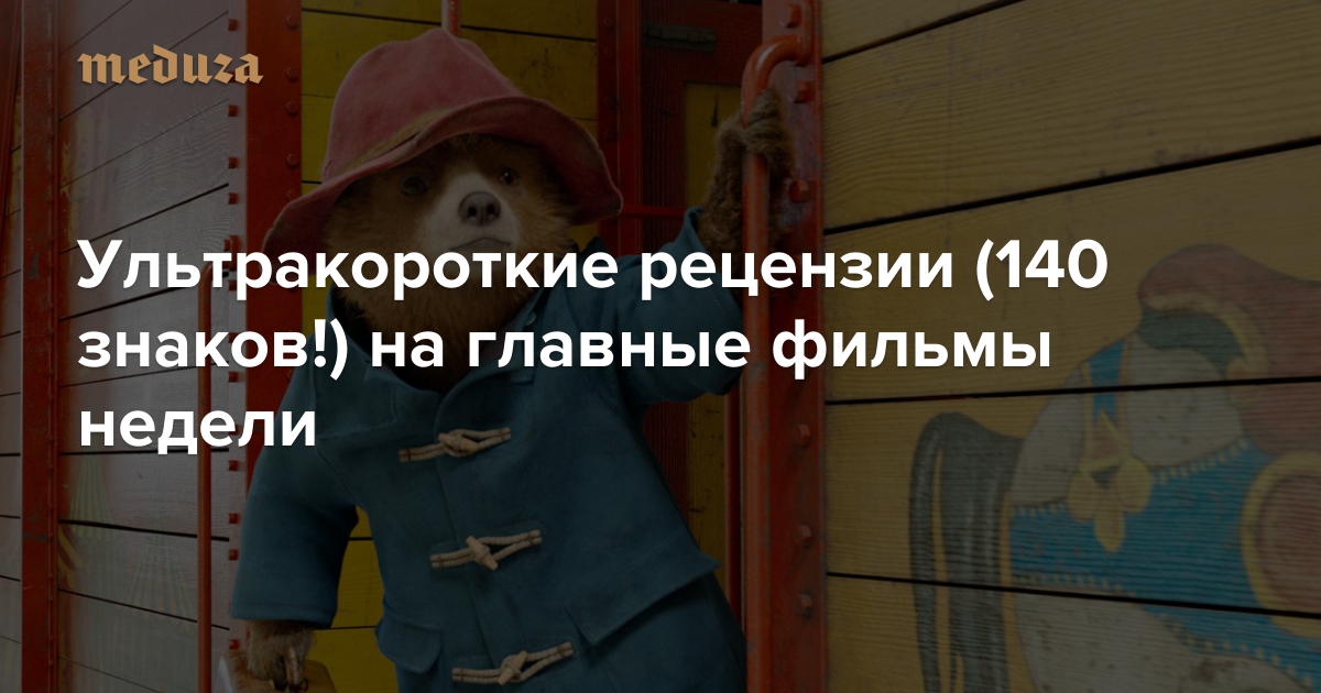 По субботам на «Медузе» выходят ультракороткие рецензии — примерно 140 знаков каждая — от кинокритика Антона Долина, которые помогают ориентироваться в прокате. Главные фильмы этой недели: приключения Паддингтона (кинотеатры отвоевали премьеру у Минкульта), «Форма воды» о любви амфибии и уборщицы, «Темные времена» о Черчилле и Дюнкерке, милая комедия об организации похорон «Карп отмороженный» Владимира Котта, камбэк Рустама Хамдамова «Мешок без дна» и «Скиф» — кино для патриотов.