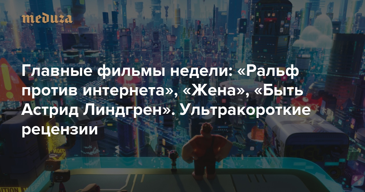 Что смотреть в кино: «Ральф против интернета», «Жена», «Подбросы», «Быть Астрид Линдгрен» Ультракороткие рецензии (140 символов!) на главные фильмы недели